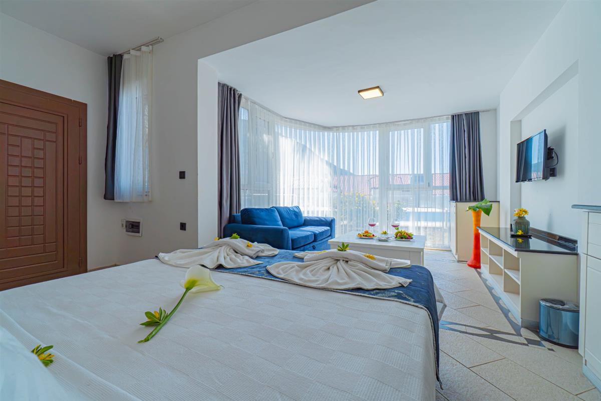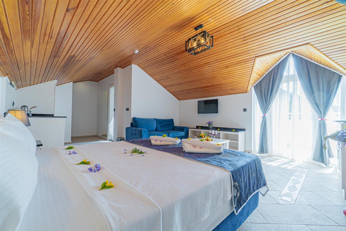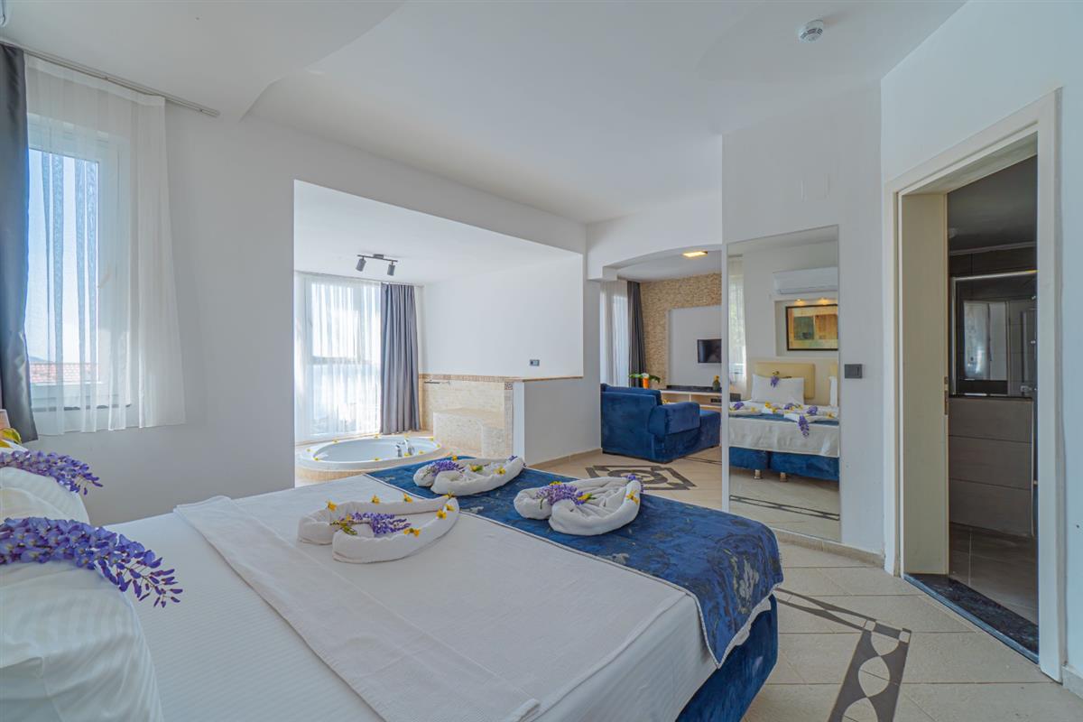 Muhteşem panorama iç ve dış mekanların modern estetiğiyle birleşmektedir. Dünyaca ünlü Ölüdeniz Plajı´na 2,5 km, Fethiye Limanı´na 13 km, alış-veriş ve eğlence merkezi Hisar Önüne ise sadece 15 dakikalık yürüyüş mesafesindedir. Tüm odalarımızda Split klima, Havlu , Terlik, Saç Kurutma Makinası, LCD TV, Telefon, Çay ve Kahve Makinesi, Mini bar mevcuttur.